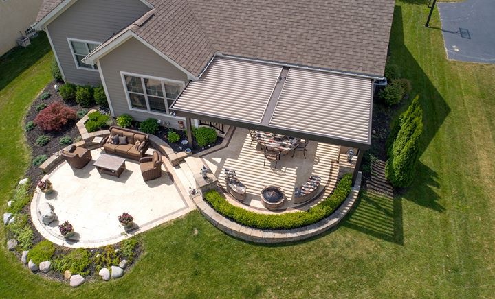 While sunrooms can act as a true extension of your home, they don't provide outdoor living space the way a Struxure pergola does. Sunrooms provide more protection from the elements, like a typical indoor living space, and are less like an outdoor living space and more like a room addition integrated with the construction of your home. A mechanical pergola installed by Cincinnati Pergola can be attached to your house or freestanding in your yard and are open to the outdoors. A Cincinnati Pergola can have dramatic structural designs and flexibility, which make for distinct and beautiful outdoor lounge areas.